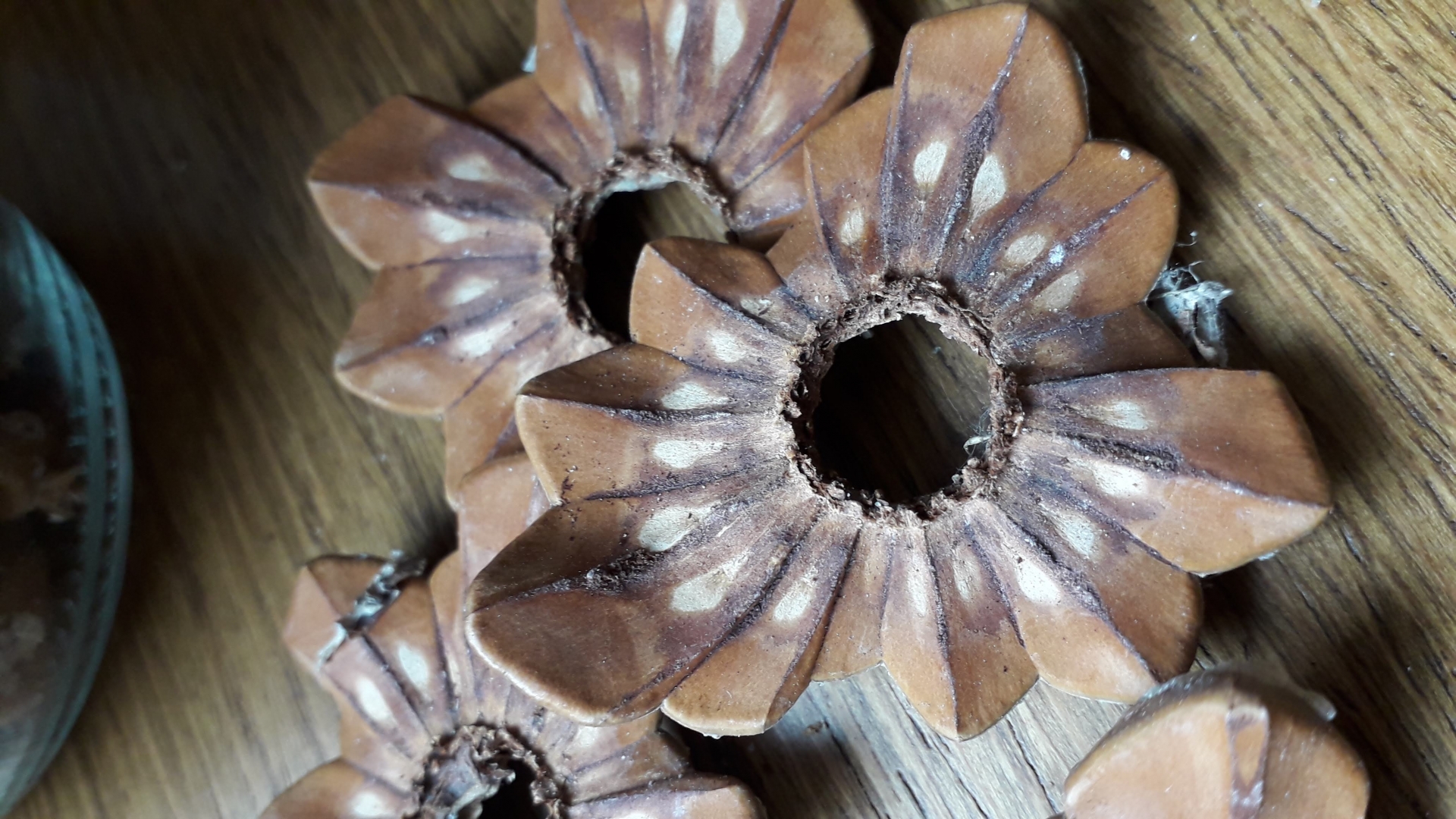 Kışın yan bahçedeki çam ağacının dibinden çam kozalakları bulmuştuk.. Ve süs olsun diye koymuştum her birini çiçeklerimin yanına. Havalar ısınınca açılmışlar, içlerinden çıkan çam fıstıkları da dünkü eğlencemiz ve çerezimiz oldular.